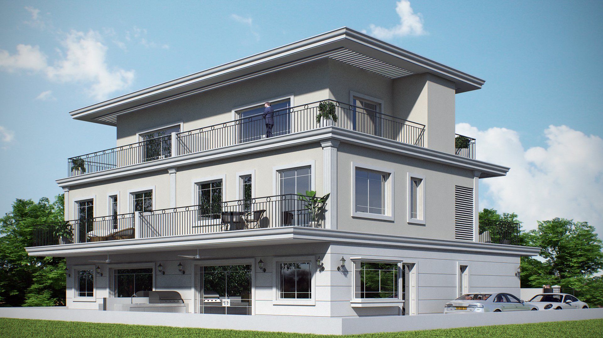 המבנים משתרעים על מגרש של 600 מ"ר וכוללים בריכת שחייה ומרחבי ישיבה.