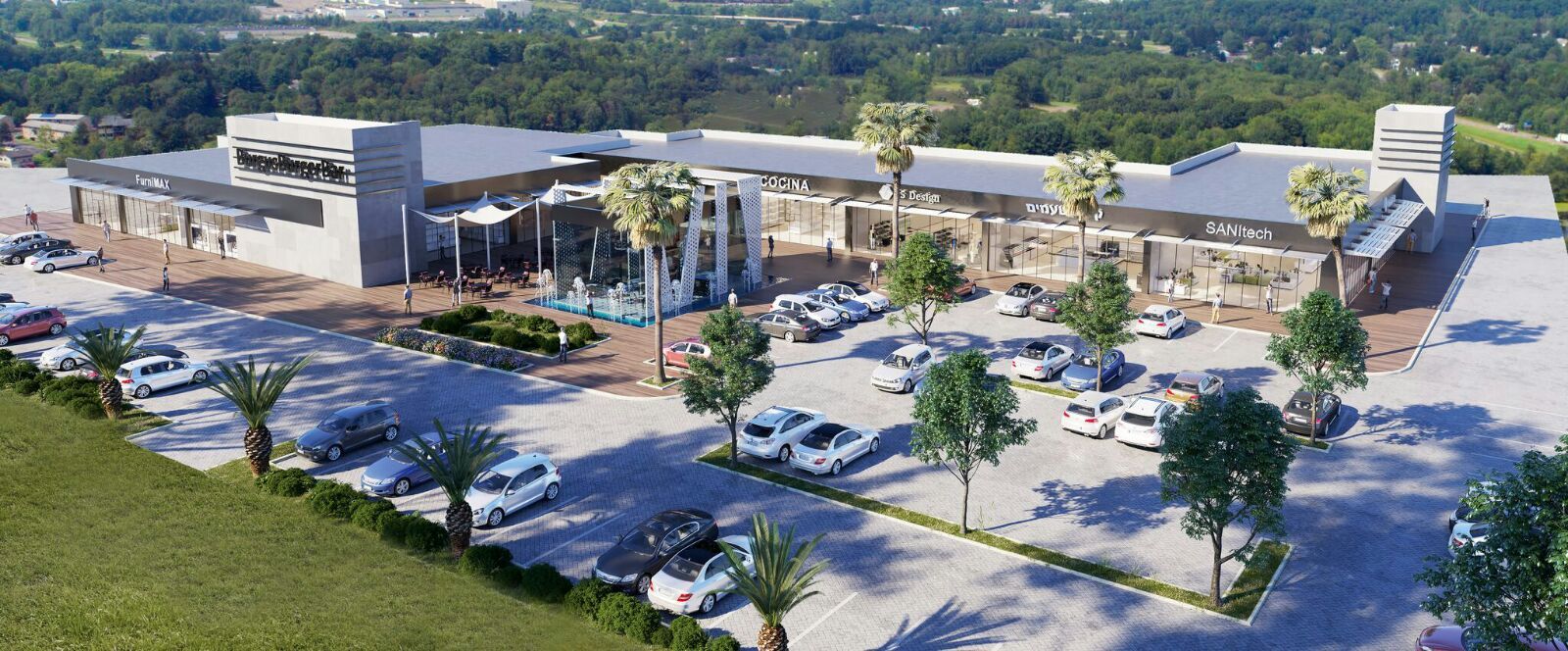 מבנה מרכז המסחרי הממוקם בשכונת רחובות הצעירה משתרעה על מגרש של דונם ומוקף גינה ציבורית ירוקה. המרכז משרת את תושבי השכונה ומשלב שתי קומות מסחר: קרקע וקומה ראשונה, ושלוש קומות משרדים נוספות. חזית קומת הקרקע המעוגלת מזמינה ומושכת את המבקרים תוך הכוונה למגרש המשחקים השכונתי הממוקם בלב הפארק.