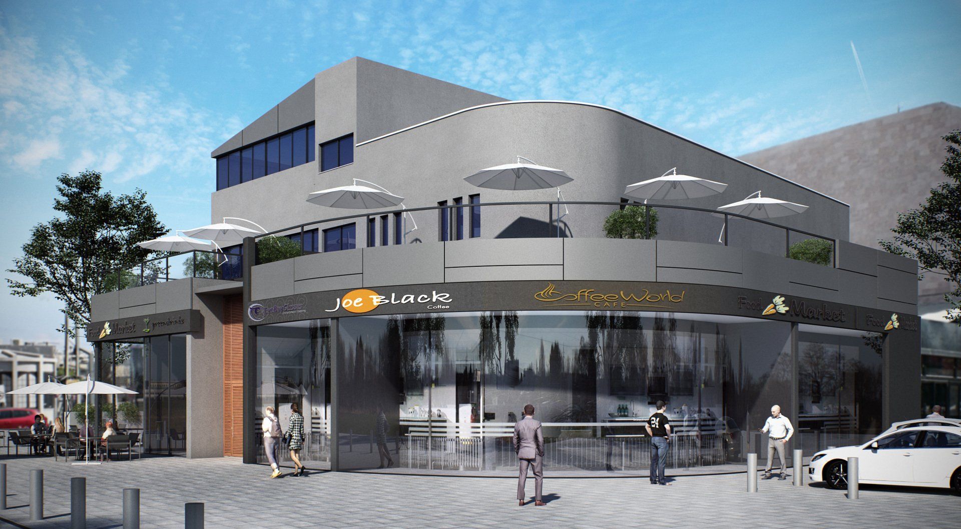 שדרוג ועיצוב מבנה מסחרי קיים, הכולל הרחבת קומת הקרקע המסחרית ופתיחת המבנה למתחם הרובע.